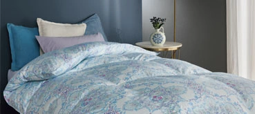 綿とパラモスを組み合わせることでソフトでしなやかな風合いのふとん生地を実現しました。